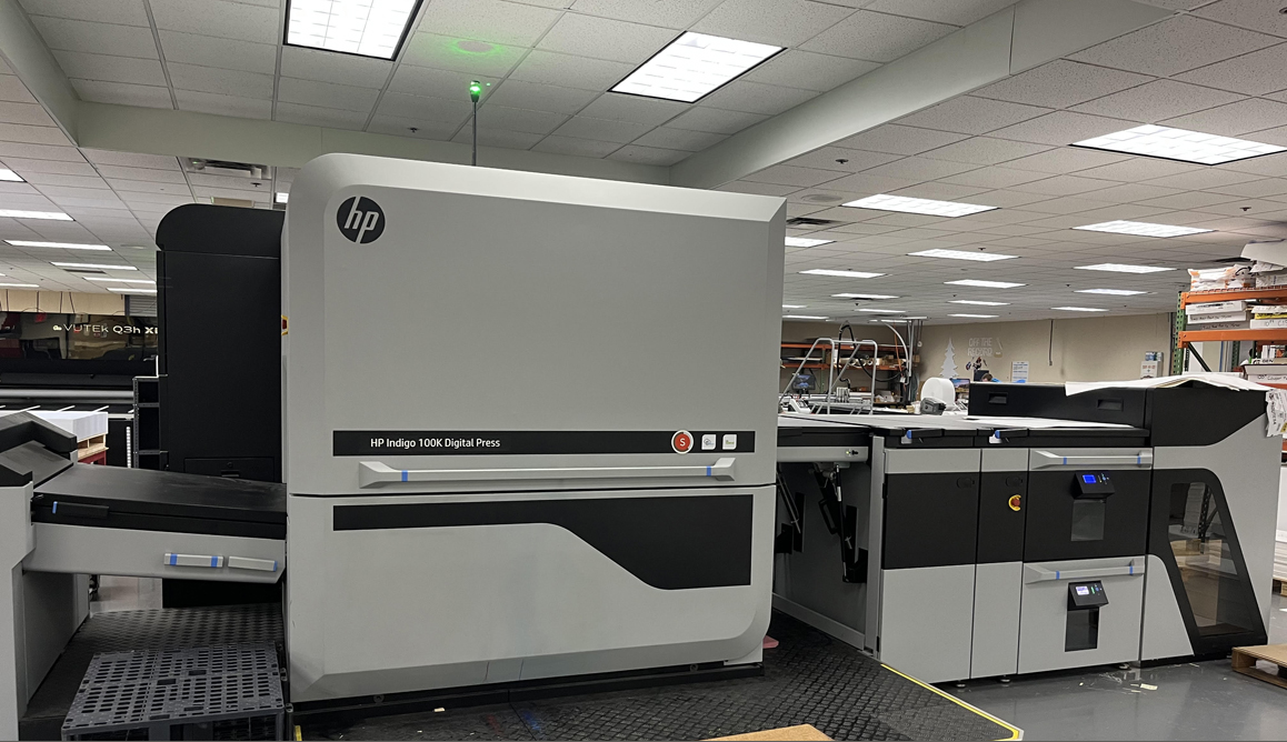 HP Indigo 100k Digital Press The 29-inch format HP Indigo 100k Digital Press is the world's most productive B2 digital solution with true digital non-stop print capabilities, at 6,000 sheets per hour. Performs with exceptional print quality, substrate versatility, and production flexibility. The 100k is the ideal press for variable data, posters, books, brochures, folders, artwork, and much more! It's an ideal fit for all your small to medium print runs utilizing a wide variety of applications.