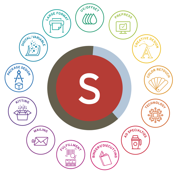 Our Services: Advertising Specialties, Large Format, Full Service Mailing, Fulfillment / Inventory Management, e Commerce Portal, Offset Printing, Digital Printing, Packaging, Kitting etc.